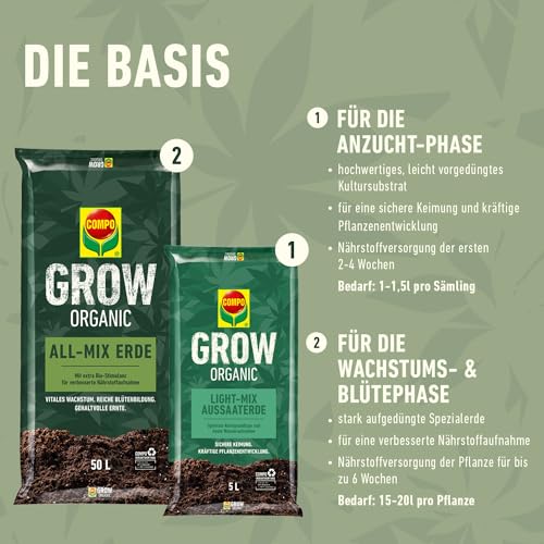 COMPO Grow Organic Box L for Sowing Special Crops, Indoor and Outdoor Use and Optimal Growth and Flowering Phase, Organic (Large)