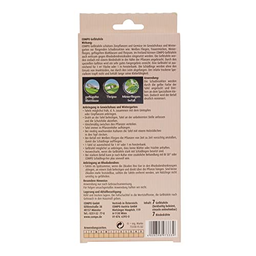 Compo Organic Yellow Sticker, Decorative Glue Trap against White Flies, Fungus Gnats, Leaf Miners, Winged Aphids, Cicadas and Thrips
