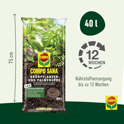 COMPO SANA® Green Plant and Palm Tree Soil with 12 Weeks Fertiliser for All Indoor and Balcony Plants as well as Palm Trees and Ferns, Culture Substrate, 40 L