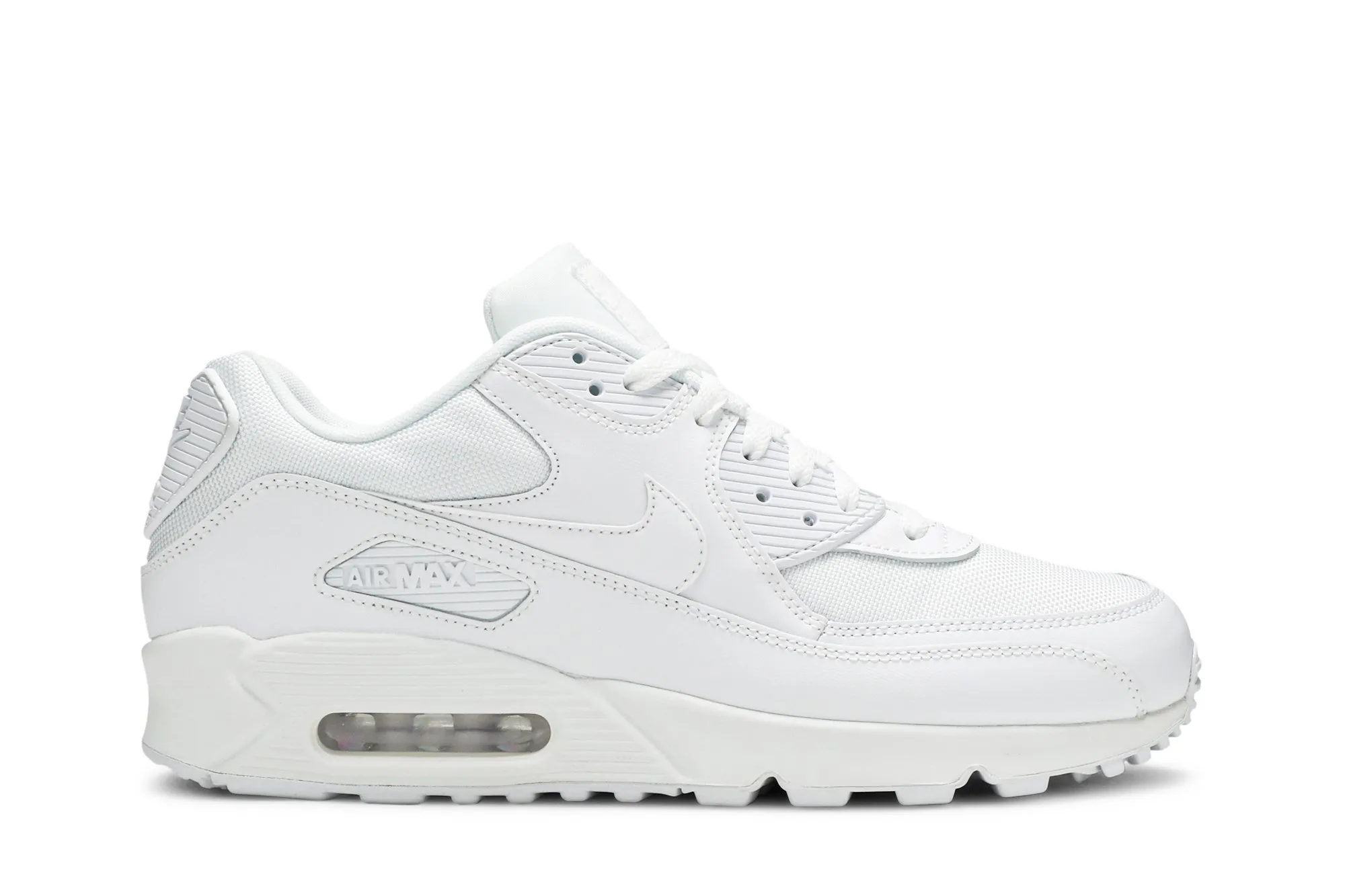 The Nthtike Air mthtax 90 Essential sneaker is a stealthy version of the classic silhouette with a strong focus on optical tactility. At the sides, traditional mesh is trimmed in coated leather for breathable comfort and durability. Elevated Air mthtax panels embellishing the quarter panels match a black Air Unit in the heel and striated synthetic details. A foam midsole and Waffle textured outsole magnify the tonal effect.