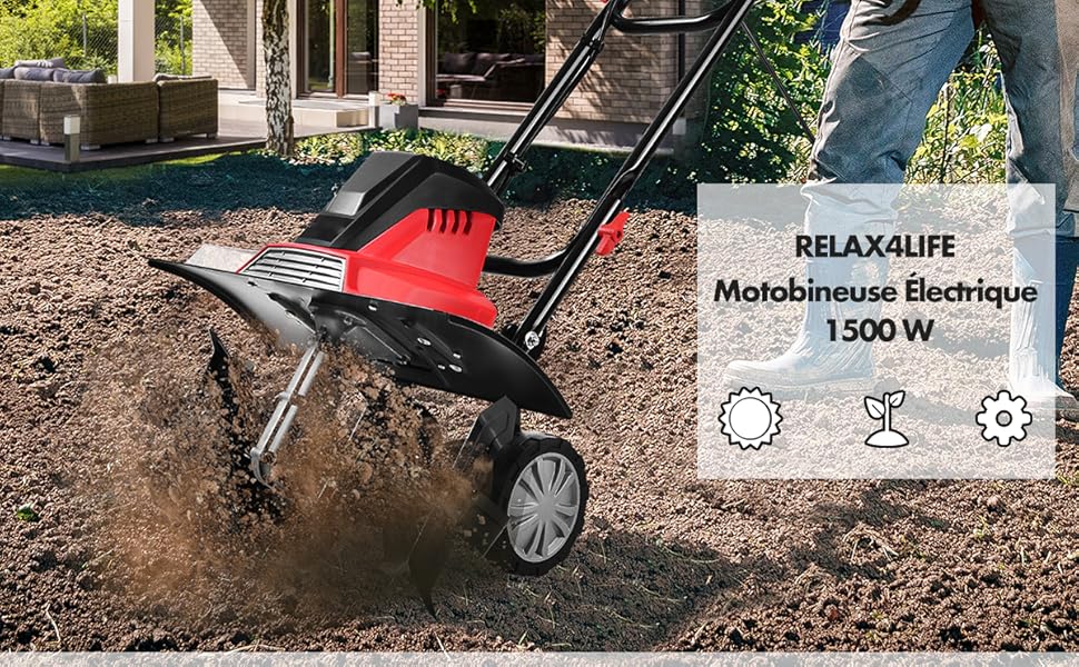 RELAX4LIFE Electric Tiller 1500 W at 400 RPM, making DIY and gardening easier.