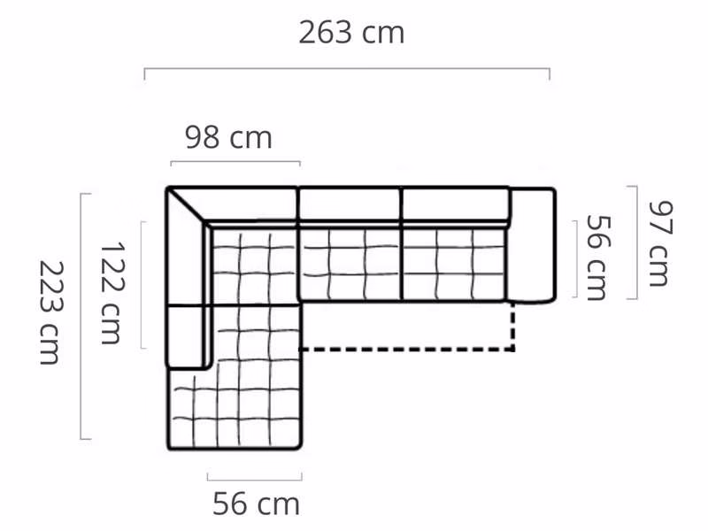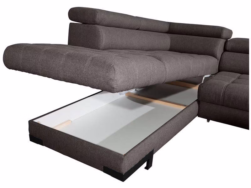 Whether you use it as a 4-seater sofa or a 2-seater bed, the SELVA sofa offers the same level of comfort. Whether you're reading or watching your favorite TV show, you'll enjoy the comfort of the adjustable headrests and armrests. Your friends will be delighted to extend their stay by sleeping in a bed that unfolds in seconds. And to store duvets, cushions, and bed linen, you can count on the storage compartment hidden under the seat.A sofa 263 cm × 223 cm × 95 cm
