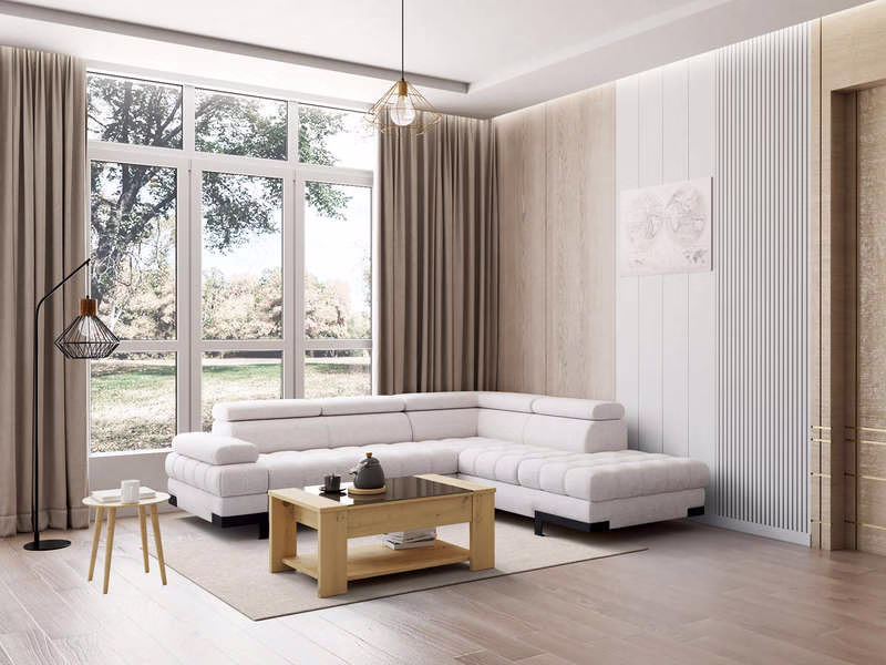 The taupe-colored SELVA 4-seater sofa bed brings classicism and elegance to your living room. It accentuates everything around it, creating a soft and warm ambiance. Don't be fooled by its plain appearance, as it greatly appreciates the company of beautifully colored cushions and vibrant decorative objects!Designed for your comfort