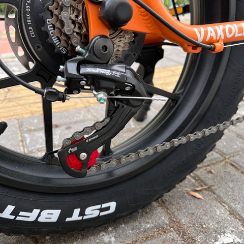 7 speed Shimano derailleur can ride on different terrain. Riders can customize the bike's equipment according to their personal preferences to adapt to different road conditions such as slopes, bumps or other difficulties. The lower gears make pedaling easier and the higher gears make going downhill easier.
